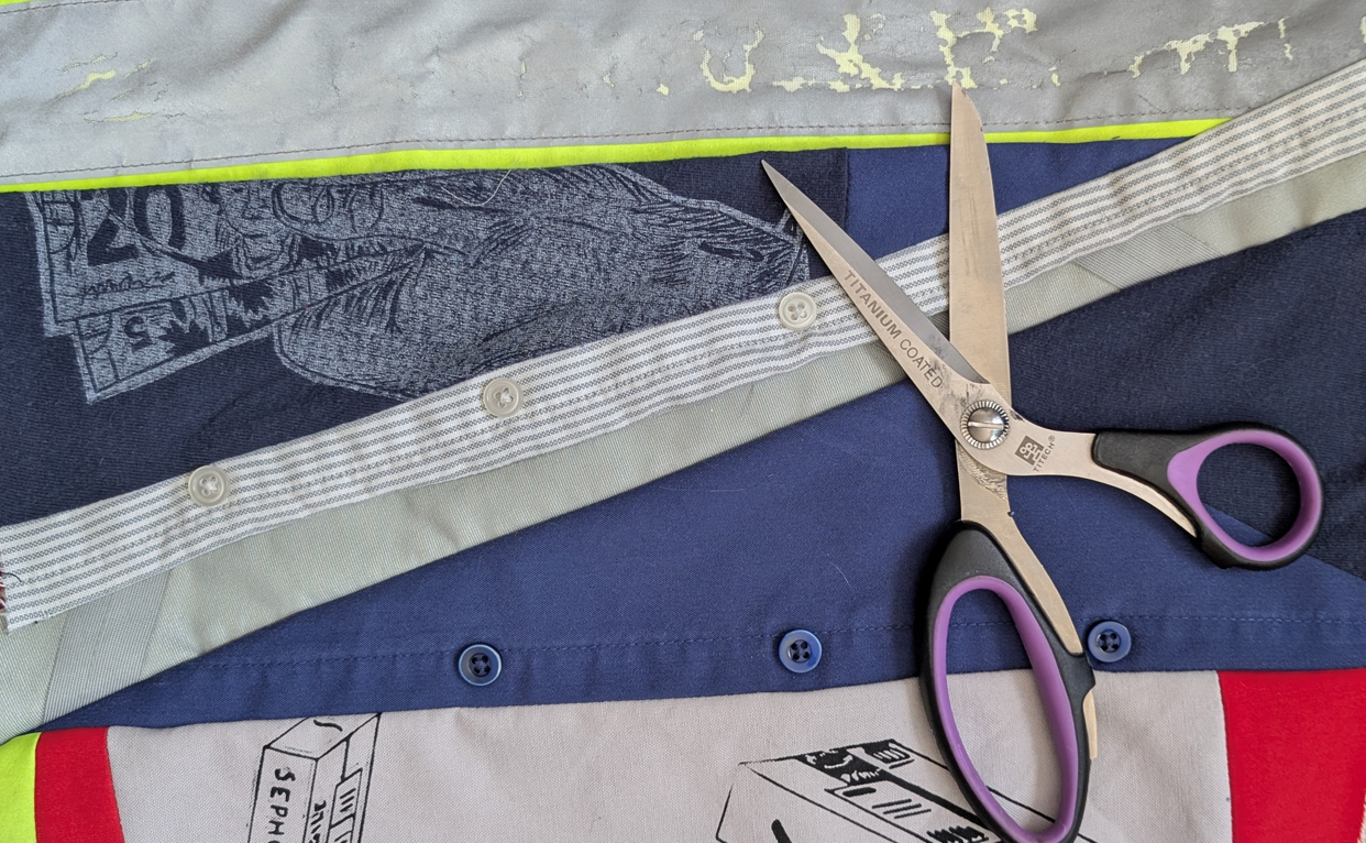 Sarah Mosher and Hannah Genosko are an artist duo collaborating in Kjipuktuk/Halifax. Hannah has a background in printmaking and bookmaking, Sarah has a background in textiles and community arts. Both are graduates of NSCAD University. Their common ground is exploring labour, anti-capitalism and the ongoing impact of the COVID-19 pandemic through quilting. Portrait of the Artist as an Essential Worker was their first project reflecting on their roles as essential workers at their jobs with Canada Post and NSLC respectively during the COVID-19 pandemic.